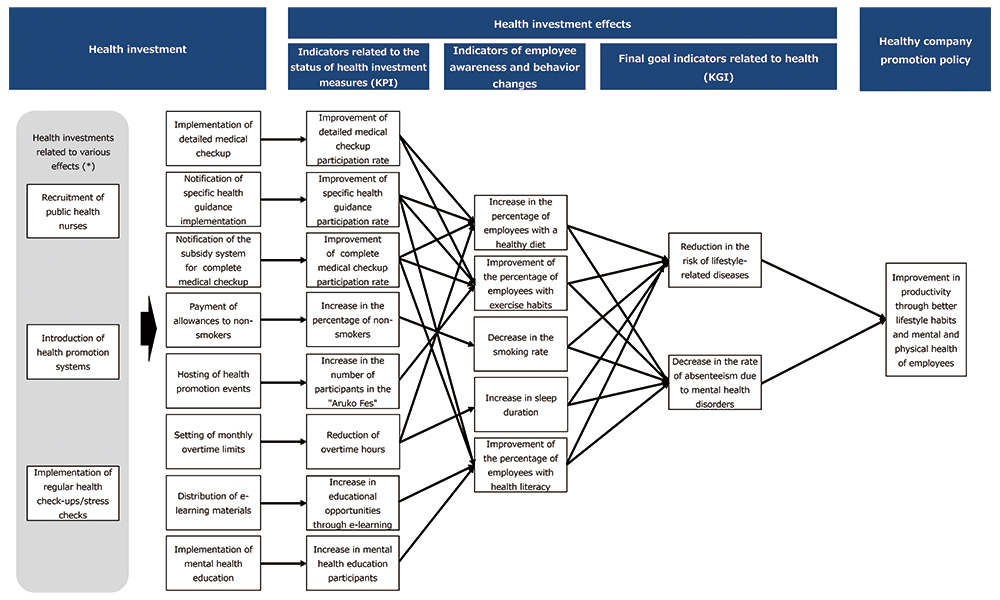 We have positioned “improving productivity through better lifestyle habits and physical and mental health of employees” as a management issue in our healthy company strategy. Based on that, we hereby define the following goals: