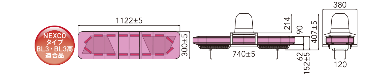 パトロールカーや消防車などの緊急自動車向けLED赤色散光式警光灯です。
