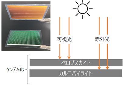 2種類の異なる電池の種類を重ね合わせることで幅広い波長の光を吸収することができ、変換効率が向上