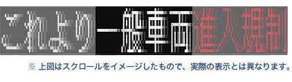 | 標準表示文字数 | 4文字4段(文字高:375mm) 4文字2段(文字高:750mm) |