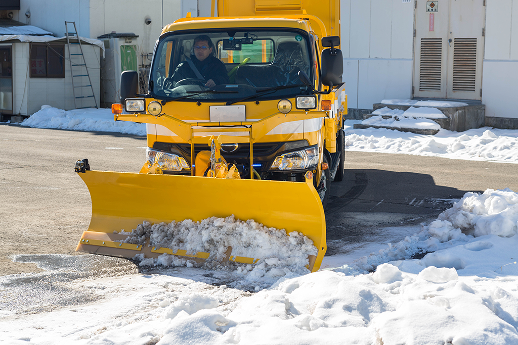 冬はスノープラウ、小型薬剤散布装置装着にて、簡易除雪車や簡易散布車として